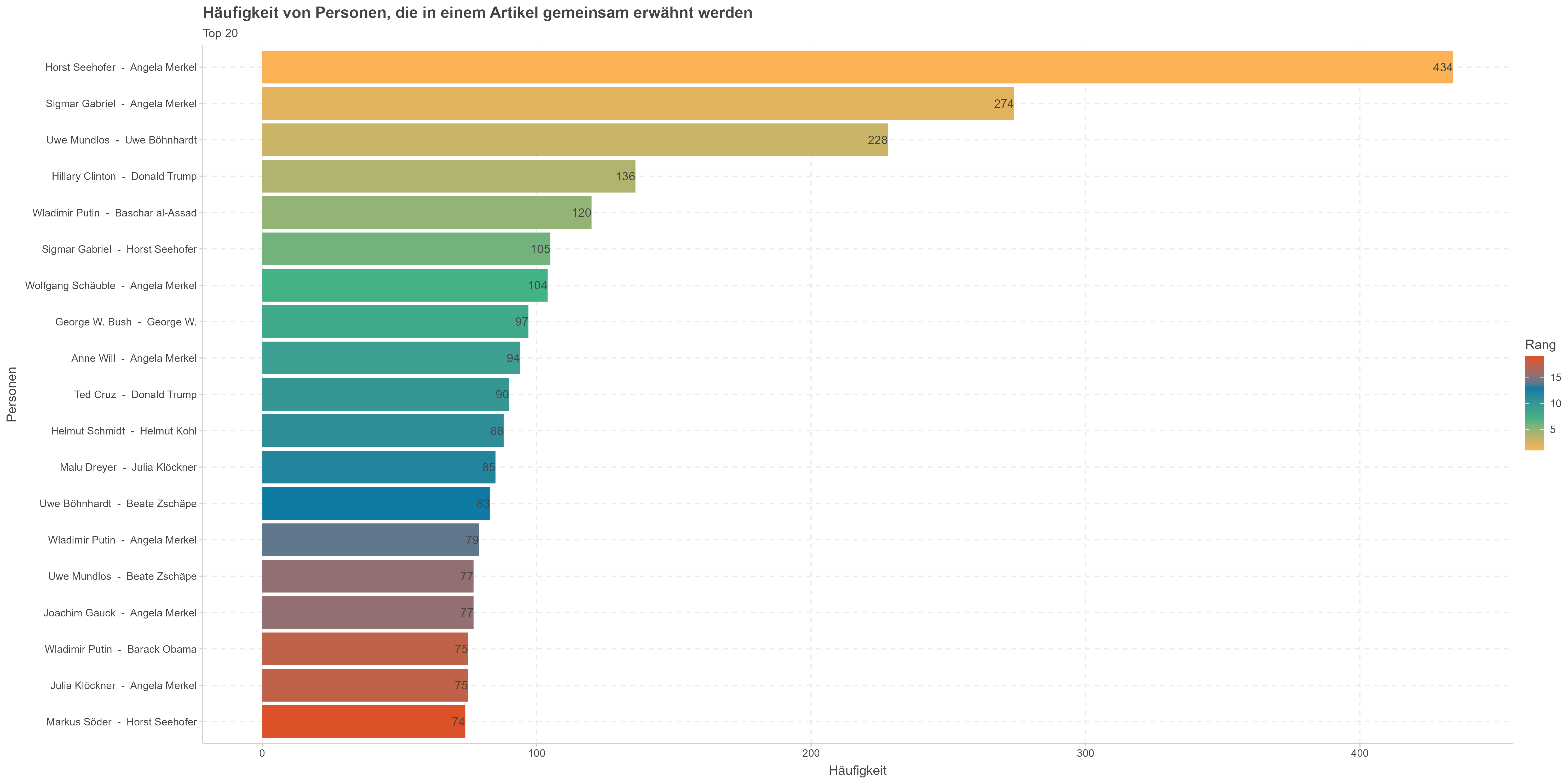 Through entity extraction, I identified the most frequently mentioned individuals in the corpus: