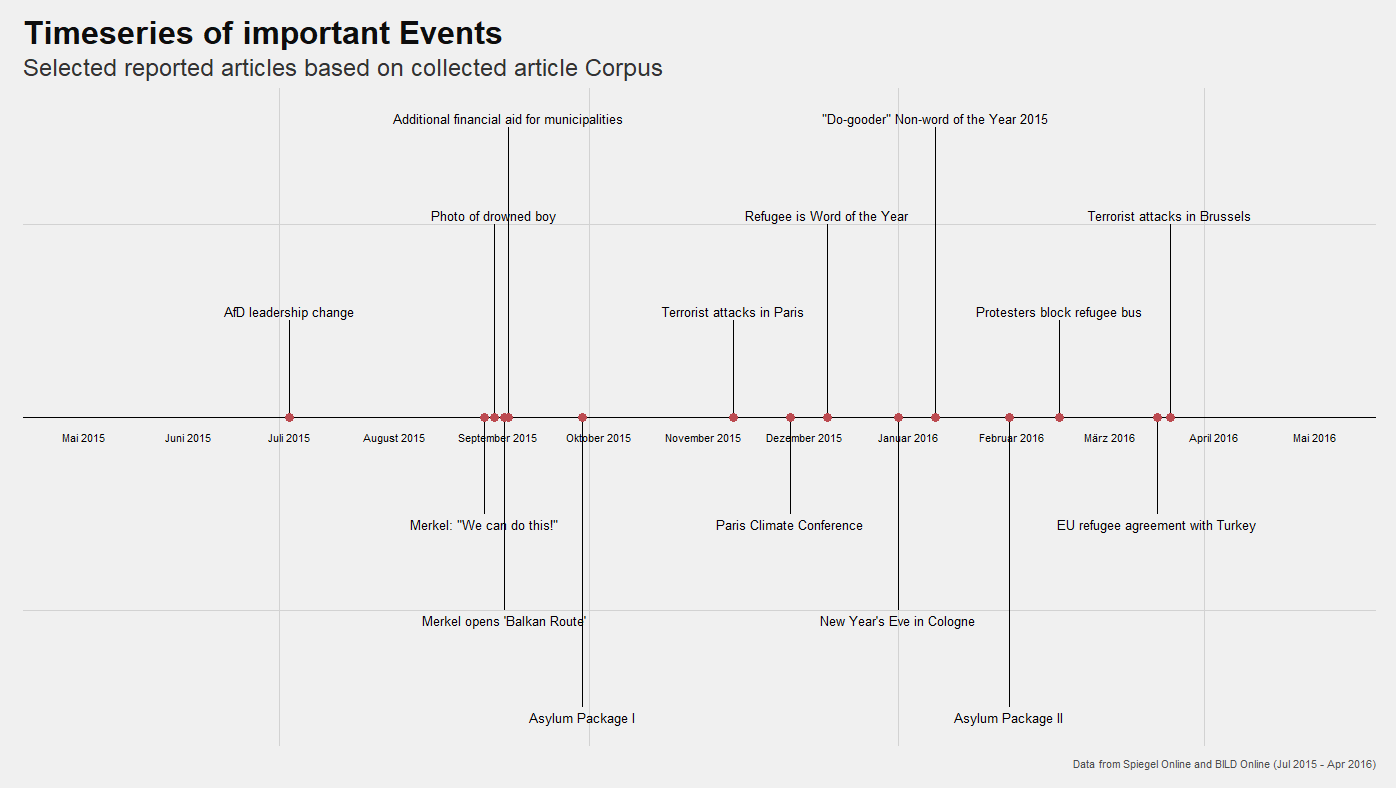August 31, 2015: Chancellor Angela Merkel delivers her famous “Wir schaffen das” (“We can do this”) speech at the Federal Press Conference, projecting optimism about Germany’s capacity to handle the influx of refugees. Interestingly, as Gathmann and Weiland (2015) noted, Spiegel did not directly quote this phrase in its initial coverage, though it became a defining slogan for Merkel’s refugee policy.